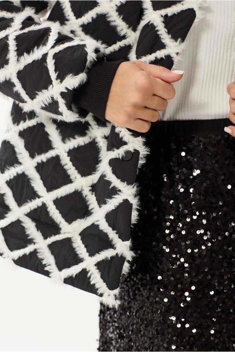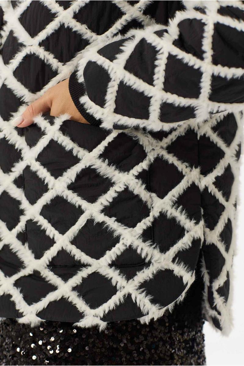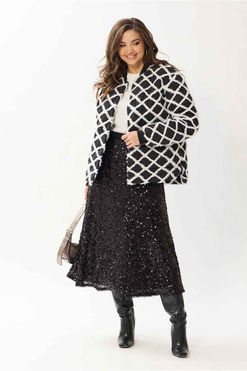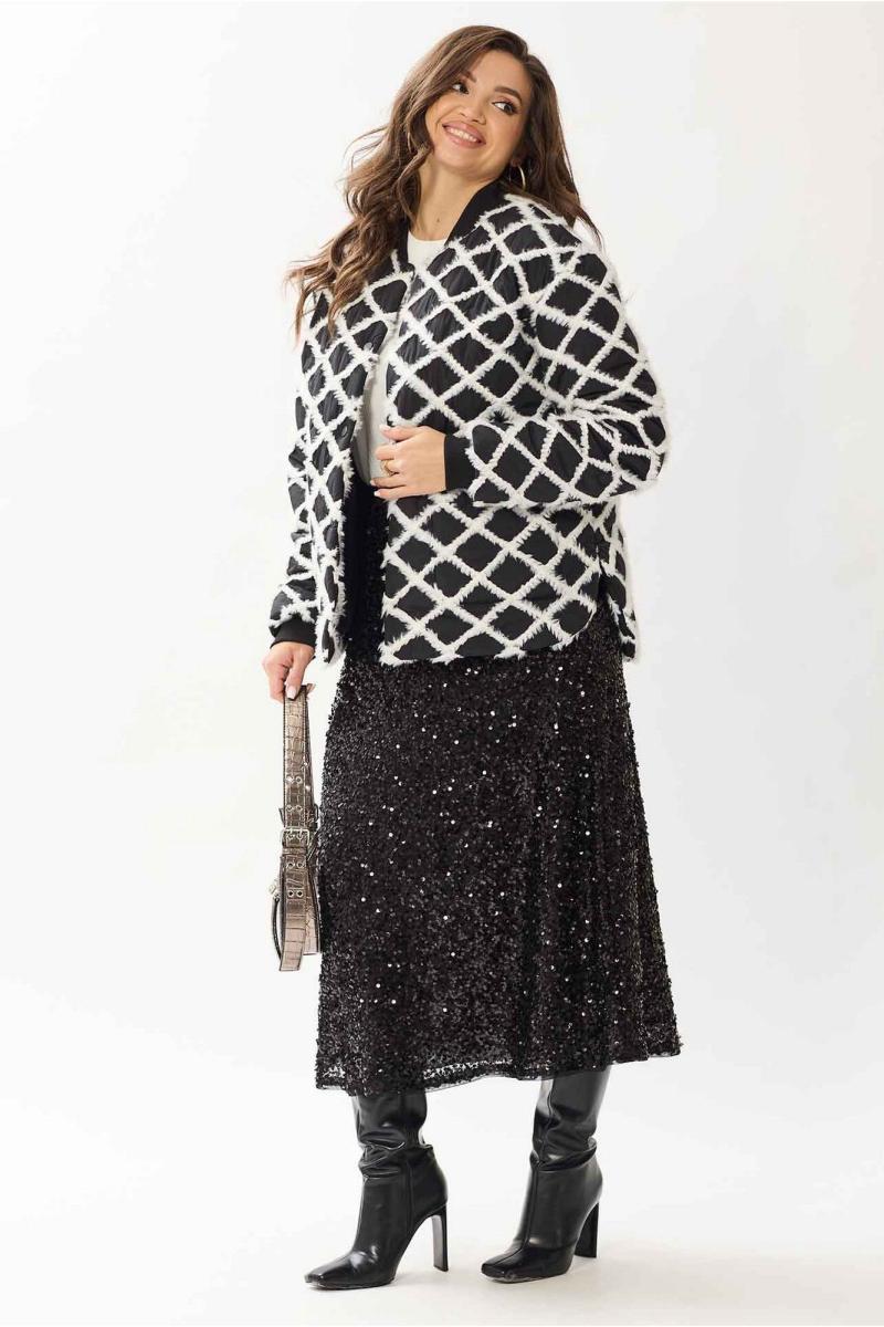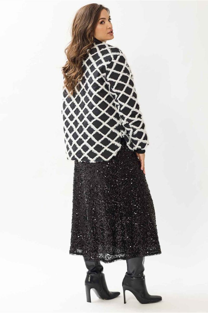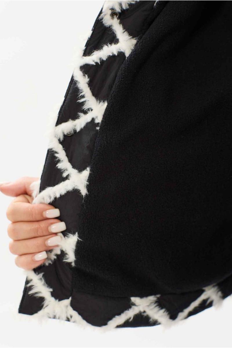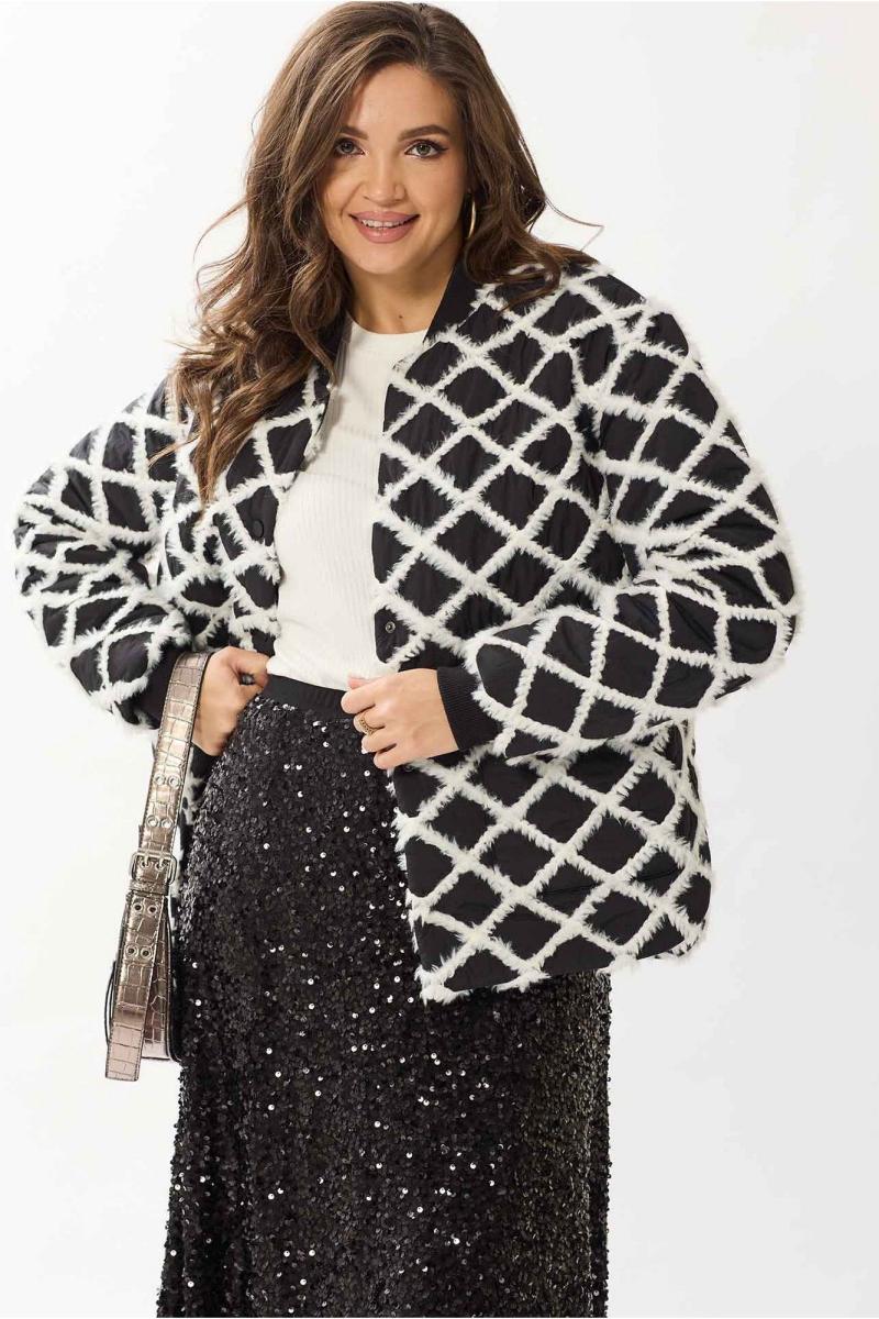 Куртка женская прямого силуэта, с центральная застежка на кнопки. Перед с нагрудными вытачками и фигурными накладными карманами. Рукав втачной 2х шовный, по низу с пришивным довязом. Горловина обработана довязом. Низ фигурными разрезами. Подкладка на флисе, утеплитель.