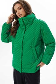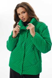 Куртка женская утеплённая осень-зима, прямого силуэта, со спущенными плечами, выполнено из ткани лаке на утеплителе изософт. По переду прорезные карманы с листочкой и застёжка на 7 кнопок. Воротник стойка. Рукава одно шовные втачные. Низ рукавов собран на эластичную тесьму резинку. Подкладка простёгана с утеплителем изософт