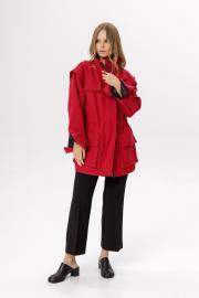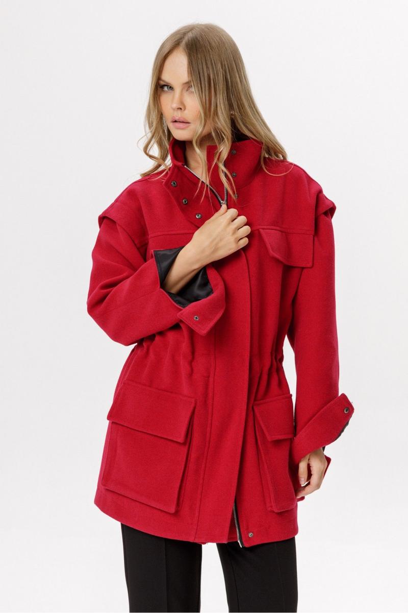 Куртка-парка свободного кроя с большими карманами. Детали: прямой силуэт, воротник-стойка, перед и спинка на регулируемой кулисе с затяжками, застежка на молнию, рукава длинные с манжетами, функциональные накладные карманы, куртка на подкладке. Длина по спинке с поясом около 77 см в размерах 40-46 и около 79 см в размерах 48-52, длина рукава с манжетой около 56 см+ спуск плеча около 6 см