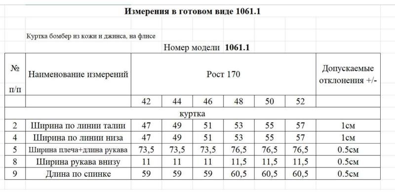 Таблица размеров