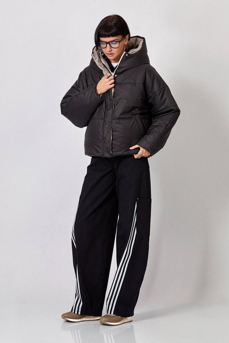 Куртка двухсторонняя: - свободный силуэт  - сезон: зима  - стёганая, утеплитель изософт 300  - спущенная линия плеча  - рукава двухшовные, расширенные к середине, зауженные к низу  - прорезные карманы с листочкой с обеих сторон  - глубокий притачной капюшон по линии горловины  - застёжка на двухстороннюю молнию и планку с кнопками  - на одной стороне спинки с кожаной этикеткой с тиснением Уход: - машинная стирка при температуре 40℃ и ниже - стирать на режиме "Синтетика" или "Деликатный",  вывернув наизнанку