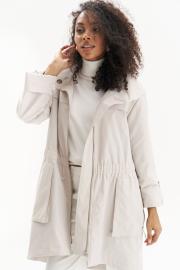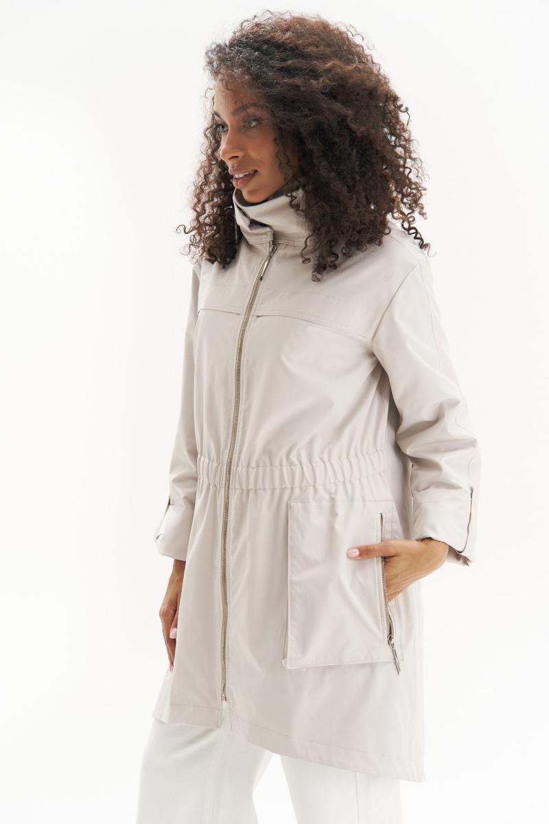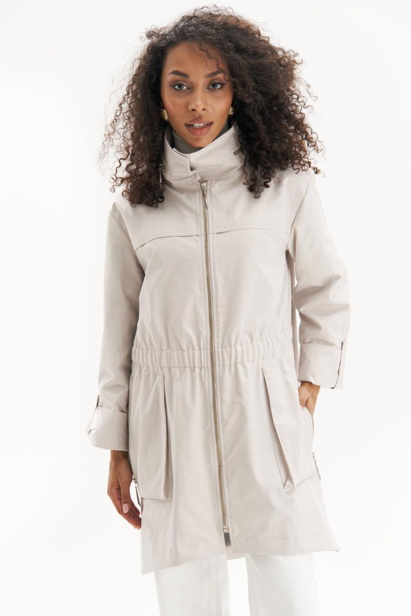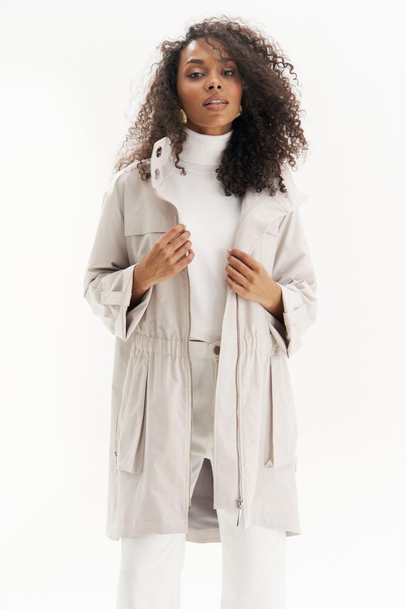 Эта легкая куртка – идеальный баланс между стилем и комфортом. Выполненная в универсальном светлом оттенке, она придает образу свежесть и элегантность, а свободный силуэт с утяжкой на талии подчеркивает фигуру, создавая женственный силуэт. Эта куртка станет стильной основой для любого весенне-осеннего гардероба!