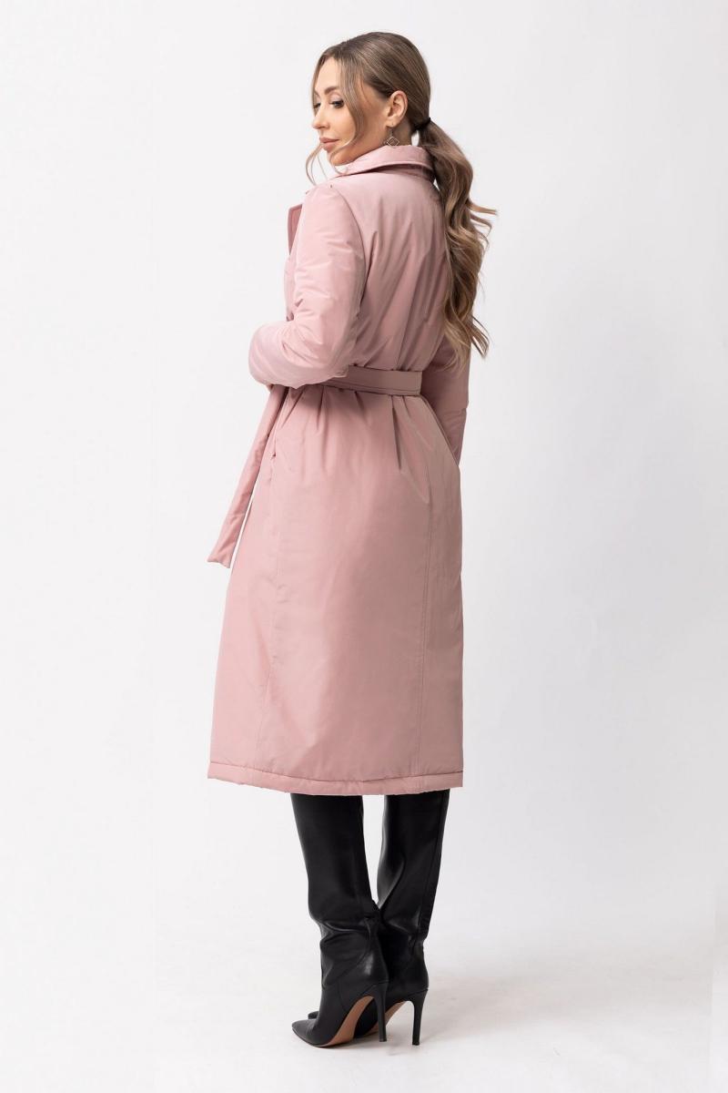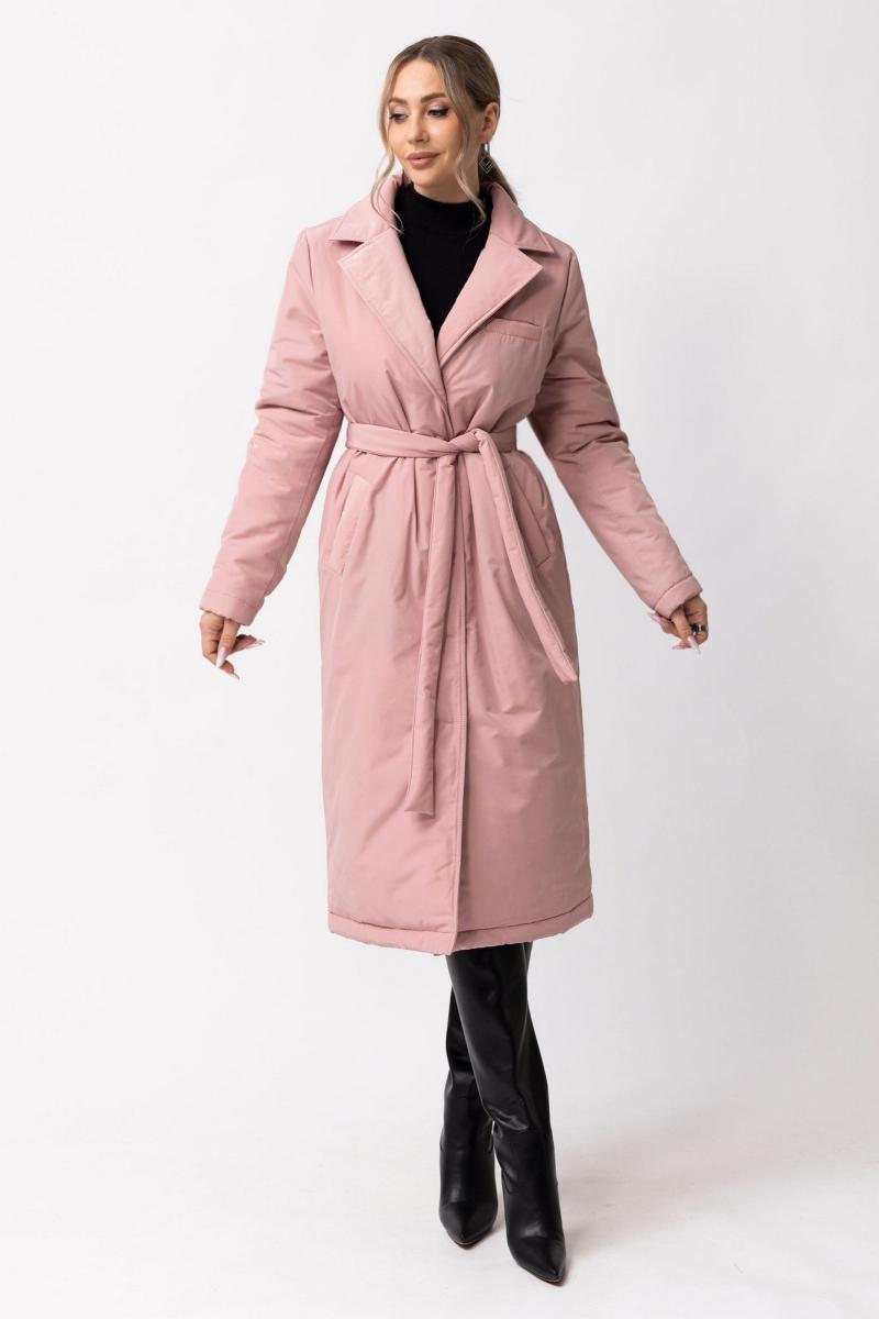 Пальто утепленное с втачным воротником и отложными лацканами, центральной застежкой на пришивные кнопки. На полочках , на уровне груди и на уровне бедер прорезные карманы с листочками. Спинка со средним швом. Рукав втачной, длинный. Пальто со сьемным поясом. Пальто выполнено из ткани в одной цветовой гамме.