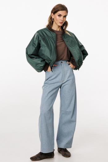 Жакет прямого кроя. Выполнен из костюмной ткани чёрного цвета. Декорирован двухслойным воланом из шитья белого цвета (волан отстёгивающийся, застёжка - пуговицы). Жакет с подкладом. Воротник отложной с лацканами. Рукав втачной. Линия плеча с подплечниками. Карманы с клапаном (функциональные). Застежка центральная на петлю-пуговицу. В среднем шве спинки шлица 24 см. Длина спинки 77 см, длина рукава 64 см