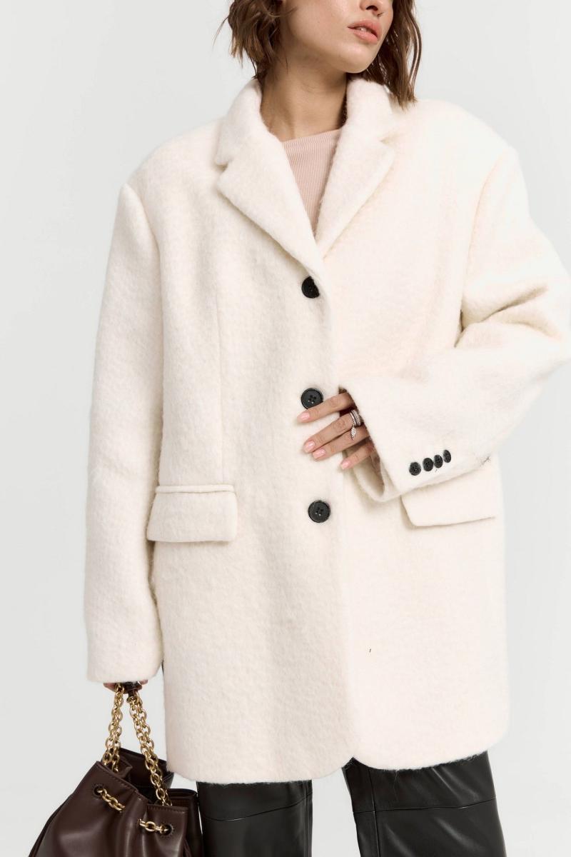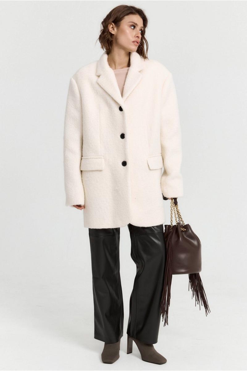 Жакет однобортный, прямого кроя. Жакет на подкладке, по бокам функциональные карманы. Жакет, выполнен из ткани с добавлением шерсти. Длина по спинке 80