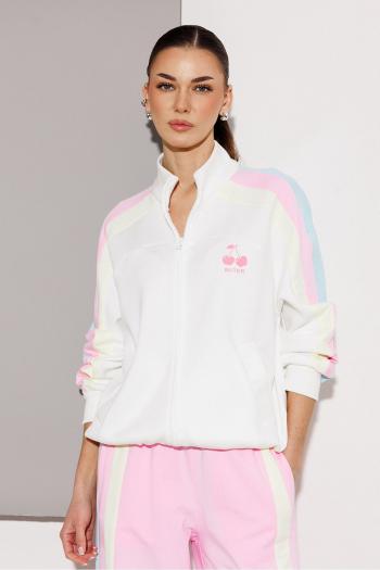 Жакет атласный прямого силуэта с рукавом реглан и центральной застежкой на тесьму-молнию. По низу рукавов и низу вставлена резинка. Жакет на подкладке с принтом "Heart".