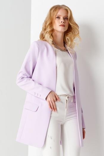 Жакет из крешированного велюра. Полуприлегающего силуэта, с подчеркнутой линией талии. Жакет с воротником и лацканом, с застежкой на декоративные пришивные пуговицы. Полочка с нагрудной выточкой от низа, двумя рельефами из проймы. С карманом и клапаном. Спинка со средним швом и рельефами, придающими приталенность изделию. Рукав втачной, двухшовный. Жакет на яркой отделочной атласной подкладке. Очень эффектный и нарядный жакет можно дополнить сьемной брошью из пайеток (модель 3004)