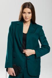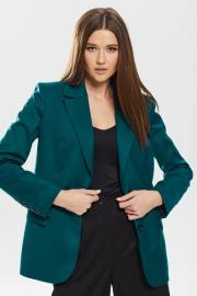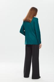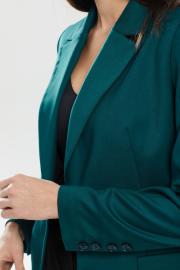 Жакет женский свободного силуэта , выполненный из костюмной ткани высокого качества . Жакет с центральной застежкой , рукав втачной двухшовный , внизу рукава шлица. Воротник стояче - отложной с отворотами лацканов . По переду жакета также функциональные карманы с клапанами . Жакет на подкладке.