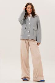 Жакет из поливискозной ткани прямого силуэта на подкладке. Рукав спущенный. На полочках накладный карманы с клапанами. Застегивается на пробивные кнопки.
