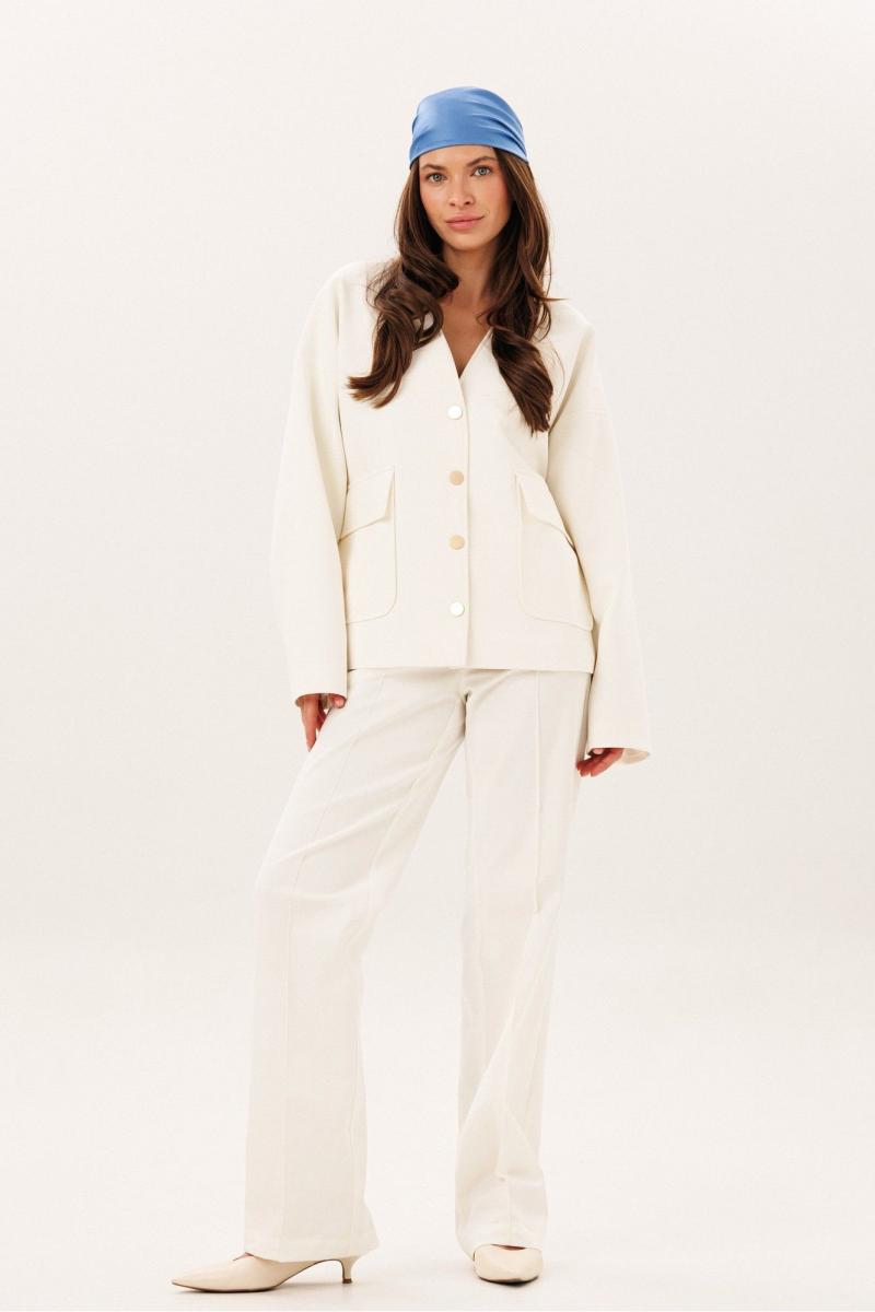 Жакет из поливискозной ткани прямого силуэта на подкладке. Рукав спущенный. На полочках накладный карманы с клапанами. Застегивается на пробивные кнопки.