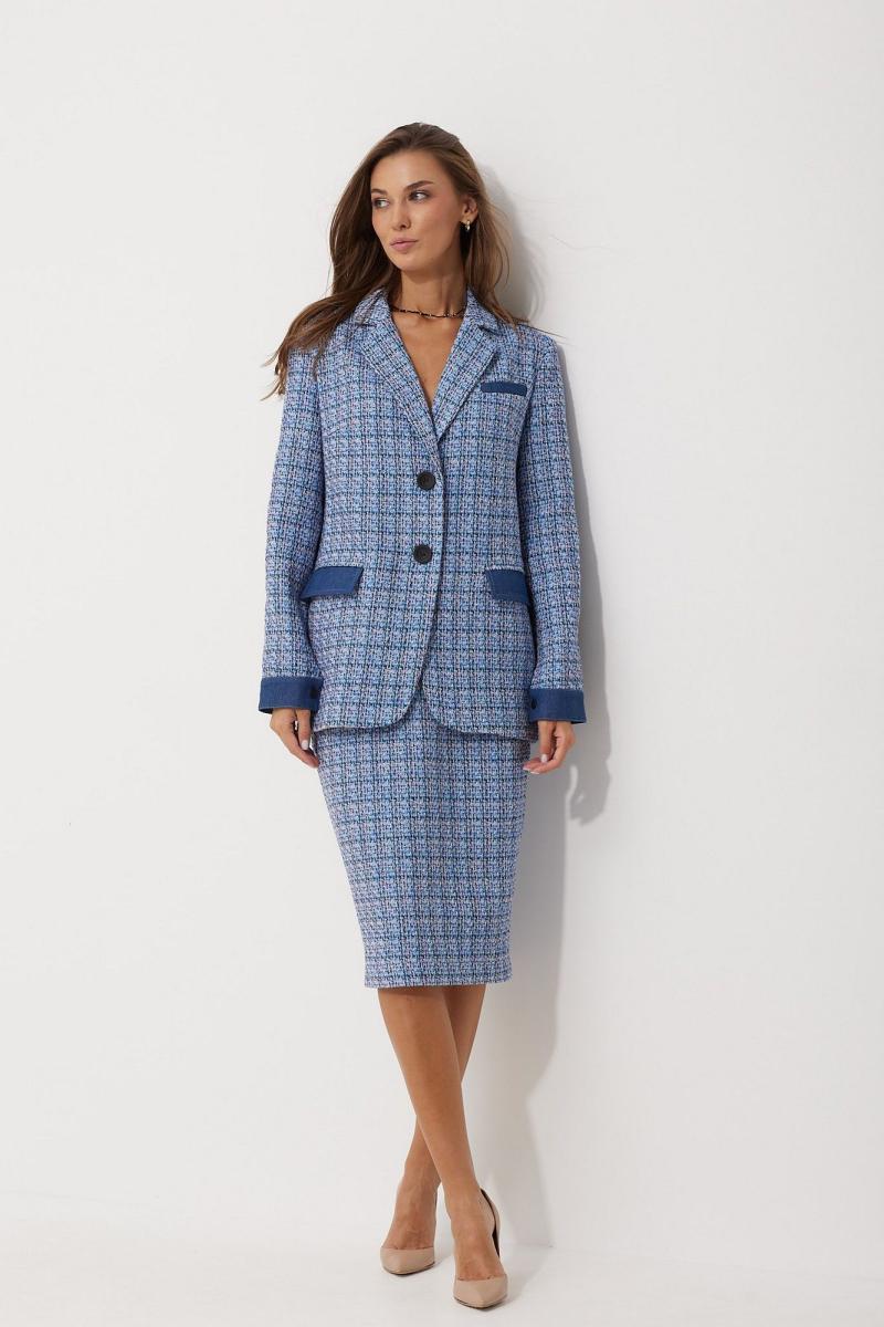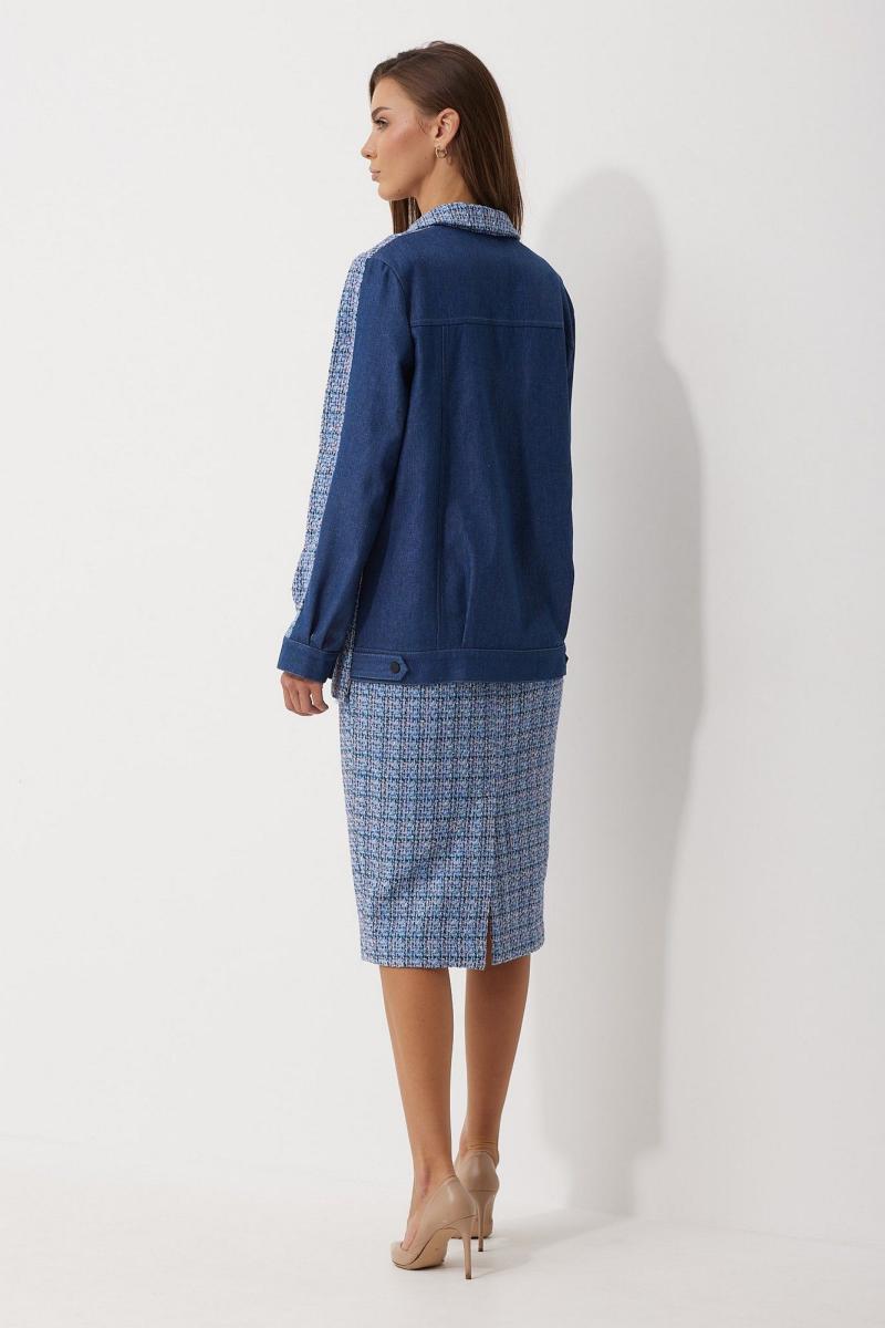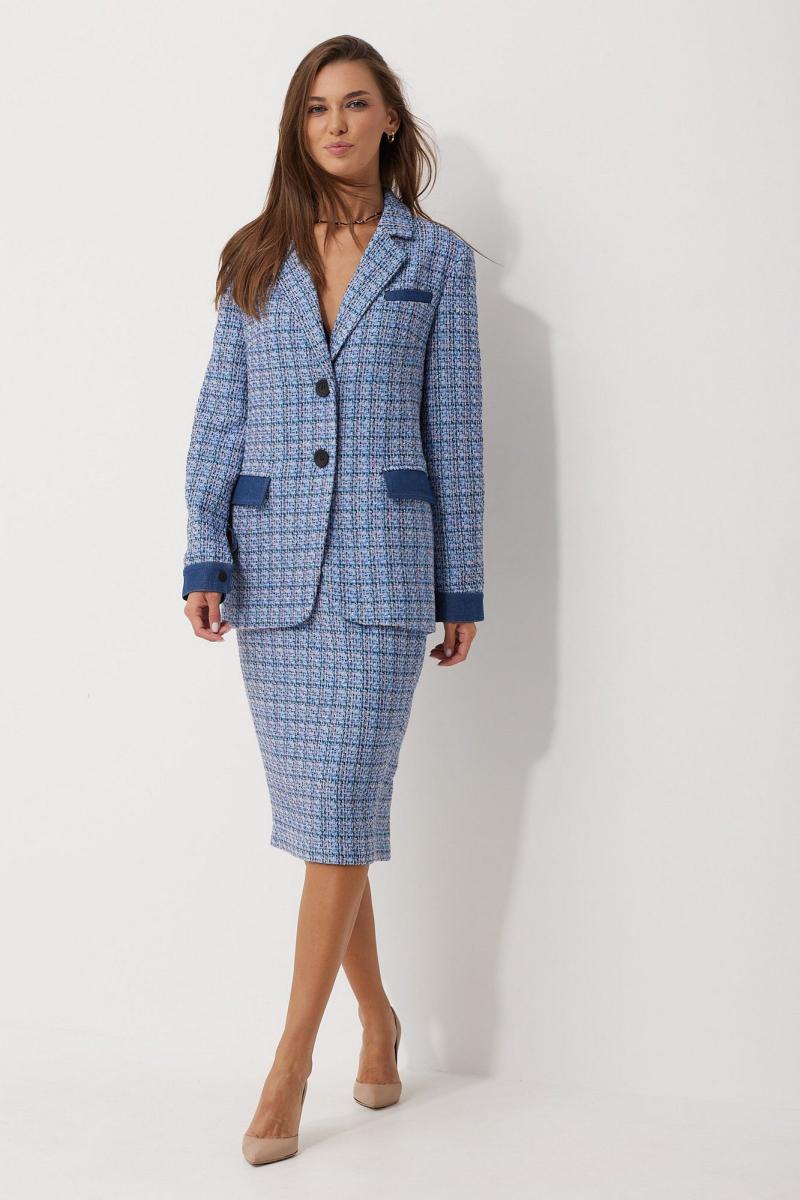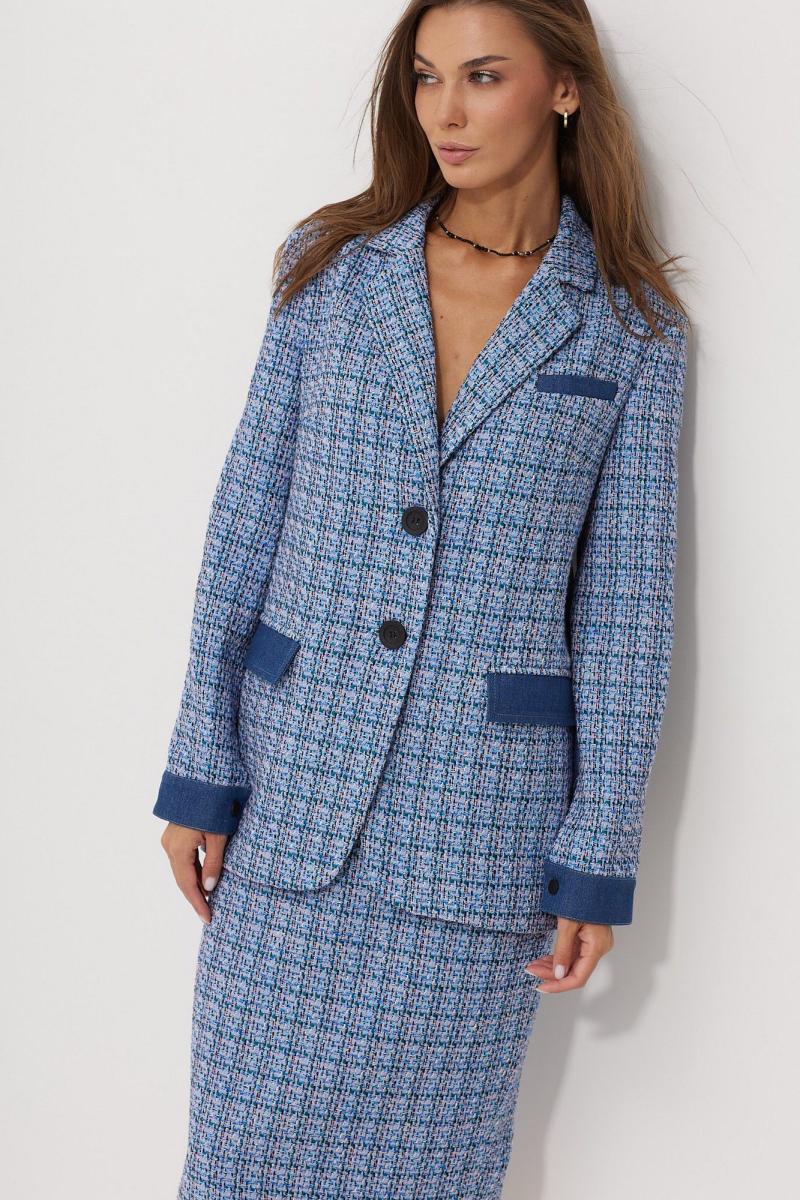 Жакет женский однобортный прямого, свободного силуэта, выполненный из тканей -компаньонов. Перед на подкладке, с застежкой на петли-пуговицы, выполнен из основной ткани с вытачками; слева в области груди расположена листочка(из ткани-компаньона), по низу функциональные карманы с клапаном из ткани компаньона. Спинка из ткани-компаньона, разрезная с отделочными строчками контрастного цвета; по низу притачная планка с декоративными патами, застегивающимися на кнопки. Воротник пиджачного типа. Рукав длинный, двухшовный, частично на подкладке, по низу обработан притачной манжетой из ткани-компаньона, застегивающейся на кнопку.Декоративные элементы и фурнитура могут отличаться от заявленных на фото. Цвет материала может отличаться по тону в зависимости от настроек вашего монитора! Длина жакета по спинке 66,5 см, длина рукава 61,5 см.