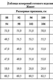 Таблица размеров