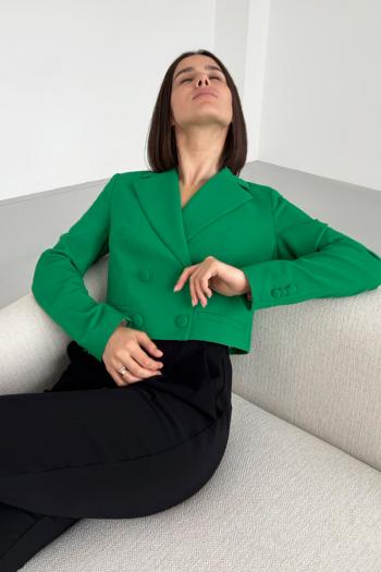 Жакет женский полуприлегающего силуэта на подкладке, застёгивается на декоративную застёжку. По переду нагрудные и талевые вытачки, по спинке центральный шов и талевые вытачки. Рукава двух шовные втачные.