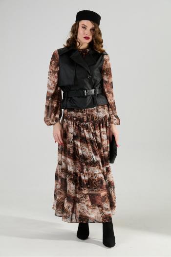 Этот женский жилет выполнен из высококачественной поливискозной костюмной ткани в мягком молочном оттенке, что придает ему элегантность и универсальность. Модель имеет полуприлегающий силуэт, мягко подчёркивающий фигуру, и отличается стильным и современным дизайном. Передняя часть украшена вертикальными рельефами, которые начинаются от плечевых швов и продолжаются до нижней линии, а также от пройм до низа, создавая эффект стройности и изящества. Спинка выполнена с средним швом и дополнена своими рельефами, идущими от плечевых швов и проймы к низу, что обеспечивает хорошую посадку и форму. В оформлении использована центральная бортовая застежка на потайные кнопки, что позволяет носить жилет как в классическом, так и в более повседневном стиле. Воротник V-образной формы придает образу женственности и утонченности. Внутри жилет полностью на подкладкладке, выполнен из поливискозной ткани, что обеспечивает комфорт и приятное ощущение при носке. Особое украшение — декоративная булавка в виде изысканного цветка, выполненного с блестящим шнуром и лепестком, которая добавляет образу нотки нежности и индивидуальности. Такой жилет отлично подойдет для создания стильных деловых образов, свиданий или повседневных комплектов, при этом легко сочетается с различными брюками и юбками. Перед стиркой декор рекомендуется снять.