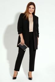 Жакет удлинённый женский приталенного покроя стройнит фигуру, благодаря рельефам по бокам, нагрудным вытачкам. Модель дополнена прорезными карманами, прикрытыми клапанами в рамку.