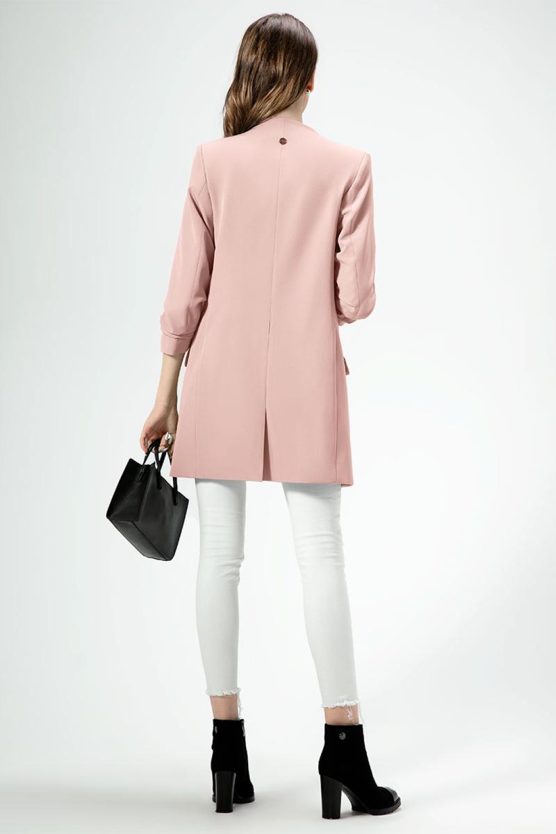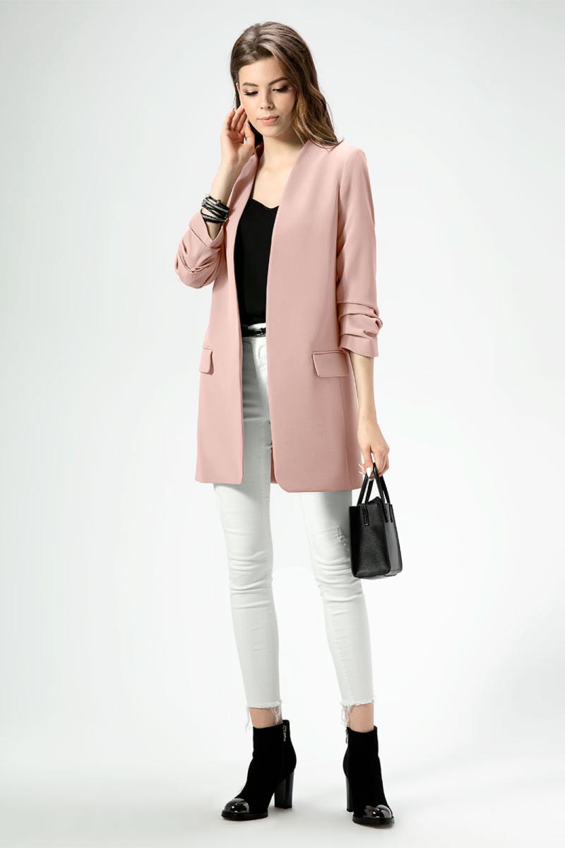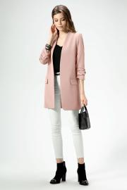 Стильный модный жакет в стиле "кэжуал". Это повседневный удобный и практичный жакет, который отлично сочетается как с джинсами, так и с брюками. Жакет удлиненный, без застежки, рукава длиной ниже локтя. По переду имеются карманы. Спинка со средним швом, который заканчивается шлицей. Жакет на подкладки.