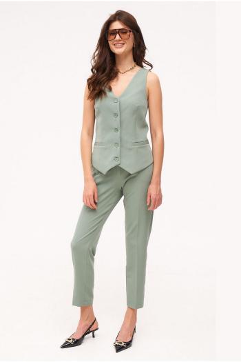 Стильный жакет полуприлегающего силуэта, выполнен из полушерсти. Застежка центральная на декоративные крючки и потайные кнопки. Воротник пиджачного типа с отложными лацканами. Спереди обработаны накладные карманы, в области груди подрезы с нагрудными вытачками. Спинка с рельефами и средним швом переходящим в шлицу. Рукава втачные двухшовные. Изделие на подкладке.