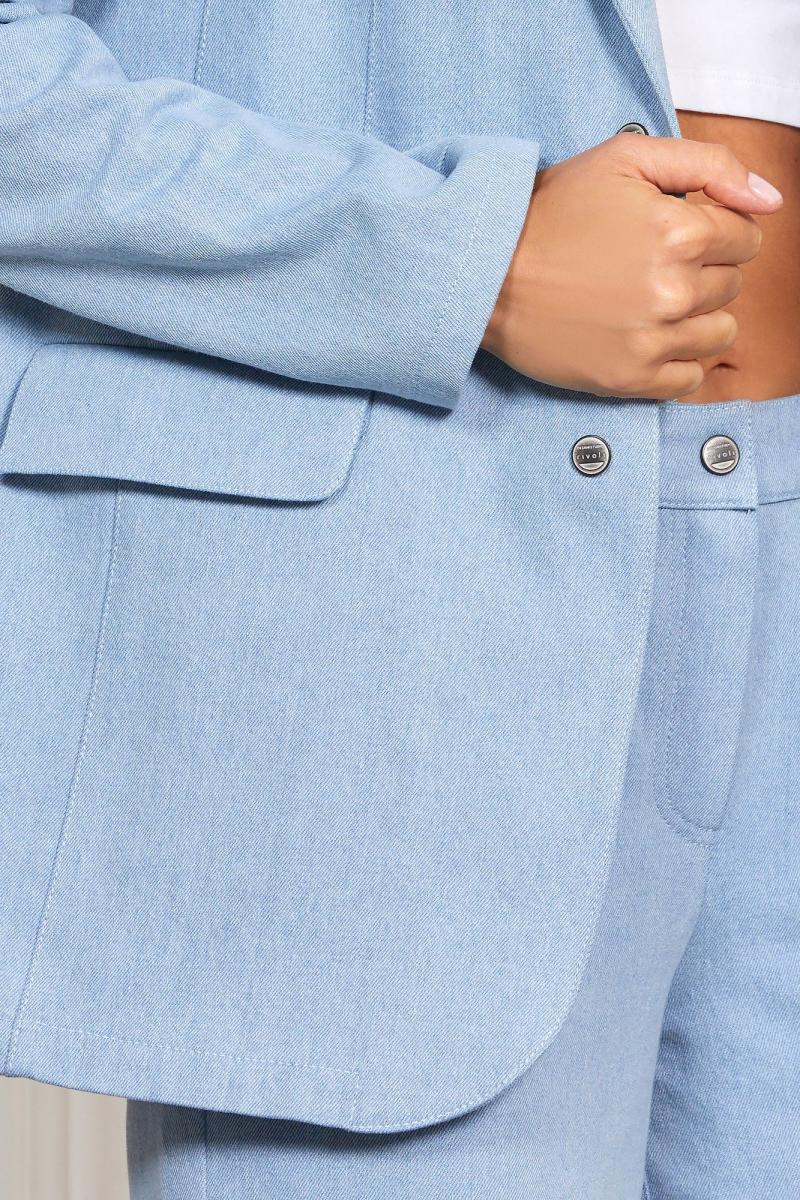 Жакет из джинса: - полуприлегающий силуэт - карман с клапаном и листочкой - застёжка однобортная на две брендированные кнопки - без подкладки