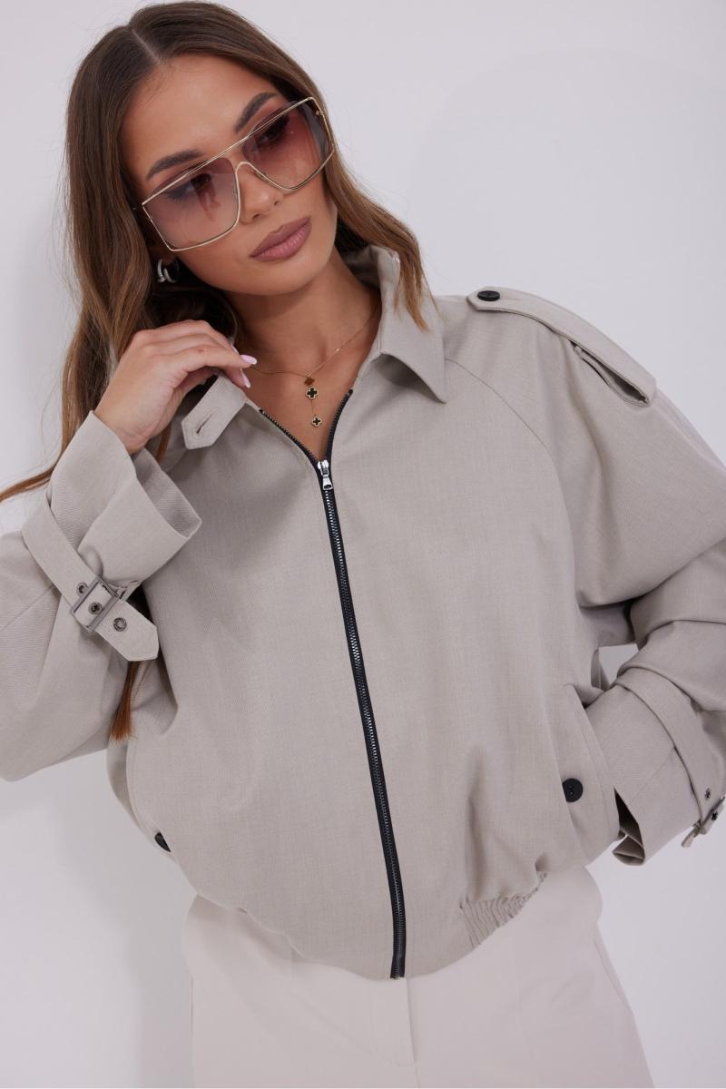 Жакет мягкой формы на молнии. Рукав реглан. Воротник рубашечный. Низ собран на резинку. На переде карманы с клапаном, погоны с пуговицей. По низу рукава шлевки и пата с застежкой на пряжку. Жакет на подкладке.